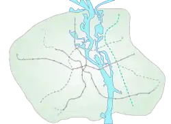The line was proposed to have a transfer station with metro lines which would connect them to the city's right bank, including the Livoberezhna station of the Sviatoshynsko–Brovarska line and a future undecided station of the Podilsko–Vyhurivska line which is currently under construction.[1] The line was also to have featured connections with existing intercity railway stations.