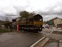 The SWR had no wish to acquire a narrow gauge (as 4 ft 8+12 in or 1,435 mm standard gauge was described at the time) mineral branch line, and for some time considered a viaduct to avoid the flat crossing of the Llanelly lines, which seemed to be the point at issue. The issue continued fruitlessly until the SWR opened its main line in October 1852; a flat crossing was provided and the Llanelly Company insisted on controlling the crossing. An exchange goods shed was built at the SWR station, served by a spur from the Llanelly Railway, opened in June 1853.[1][3]