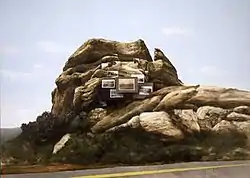 Through the late sixties into the seventies Foulkes created landscape paintings that utilized the iconography of postcards, vintage landscape photography, and Route 66-inspired hazard signs. This period resulted in his first retrospective organized by the Newport Harbor Art Museum (1974). Music also became a major catalyst in Foulkes's work at this time. He played drums with City Lights from 1965 to 1971, and formed his own band, The Rubber Band, in 1973, which stayed together until 1977. By 1979, Foulkes had returned to his childhood interest in one-man bands and began playing solo with "The Machine," which he created. He still performs with The Machine regularly on the West Coast and has released a CD of original compositions, entitled Llyn Foulkes and His Machine: Live at the Church of Art.