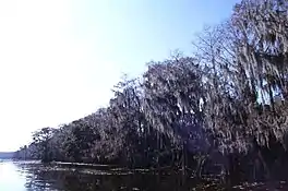 Lochloosa Lake is a lake about 6,100 acres (2,500 ha) in area in Alachua County, Florida, about 4 miles (6.4 km) south of Hawthorne, and is up to 10 feet (3.0 m) deep.[1] It is drained by Cross Creek into Orange Lake. It is largely surrounded by the Lochloosa Wildlife Management Area, and is a Fish Management Area. Lochloosa Creek is its largest tributary. The lake is noted for bass fishing.[2][3][4]
