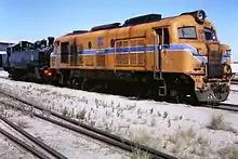 The contractor responsible for the construction of the Fremantle-Guildford railway, John Robb, sold his locomotive to the WA government also in 1881, and it became Number 3. Number 3 became to prototype of the WAGR A class 2-6-0 tender locomotives.[1] The A class locomotives were soon supplemented by the B class 4-6-0T tank engines which had twice the haulage capacity of the A class. During this time the WAGR had been greatly expanded over the Darling Scarp and into the large agricultural strip to the East, specifically to the centers of Chidlow, Northam and Toodyay (then Newcastle). With the beginning of WA gold rushes in 1888 the railways required massive expansion and in 1889 the WAGR received a larger version of the A class which had been used in the construction of the private Great Southern Railway in Albany, on the southern coast of Western Australia.[1] The new locomotives were a vast improvement over previous types and became the WAGR G Class, of which a total of 72 were eventually ordered, becoming the railways' most numerous type for its entire history. The G class existed in two forms - the initial 2-6-0 configuration and a later 4-6-0 type with improved running stability. The G class was immensely successful on a wide range of duties, and although phased out of mainline workings in the early 20th century, it lingered until the very end of steam in WA, with two examples still working as shunters at Bunbury in August 1972.[3]