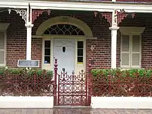 Loder House is an 1834 two storey brick Georgian townhouse with attic and later Victorian two storey timber verandah with cast iron lacework balustrades and verandah brackets.[2]