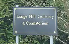 Entrance sign for Lodge Hill Cemetery & Crematorium on Weoley Park Road