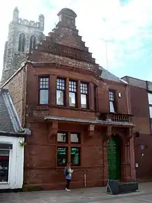 Legend has it that Kilwinning Abbey was built by stonemasons who had travelled from Europe and established a lodge there.[2] In 1599 William Schaw introduced the Second Schaw Statutes which specified that "ye warden of ye lug of Kilwynning" to "tak tryall of ye airt of memorie and science yrof, of everie fellowe of craft and everie prenteiss according to ayr of yr vocations".[3][4]