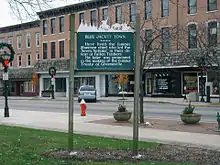Historical marker in downtown Bellefontaine marking the site of Blue Jacket's Town