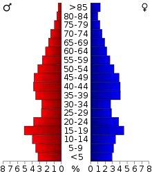 Age pyramid for Logan County, Oklahoma, based on census 2000 data.