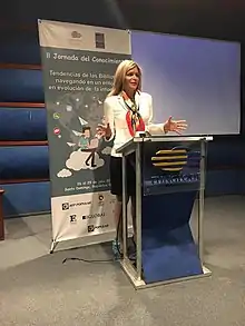 ![]() Loida Garcia-Febo speaking at a library conference in the Dominican Republic, 2016 | |