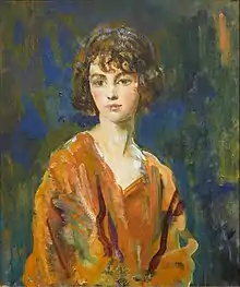 She became famous as the most painted woman of England: at just 20 years old, she had already seven portraits taken, including 4 sketches by Etienne Drian, studies in oil by Ambrose McEvoy, Olive Snell and Gerald Kelly and a self-portrait. All seven were exhibited in 1921 at the annual show of the National Portrait Gallery.[2] She attended the Slade School of Art and scandalizing society, she opened her own art studio in Chelsea. Wyndham Lewis said she was "the most beautiful debutante of her day" and Barbara Cartland said she was "fiery, impetuous, and with dark, flashing eyes."[3]