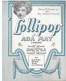 Lollipop is a musical comedy in three acts with book by Zelda Sears, lyrics by Sears and Walter De Leon, and music by Vincent Youmans. The show was produced by Henry W. Savage at the Knickerbocker Theatre, and opened January 21, 1924.[1]