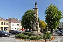The historic town centre is formed by Husovo Square. It main landmark is the town hall from 1864, after the previous town hall burned down. It has a neo-Gothic façade.[10] Town Museum and Gallery was founded in 1891 and since 1945 is located in the Hrubý House, the only Neoclassical building in the town built in the 1820s.[11]