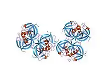 In molecular biology, the Lon protease family is a family of enzymes that break peptide bonds in proteins resulting in smaller peptides or amino acids.[1] They are found in archaea, bacteria and eukaryotes. Lon proteases are ATP-dependent serine peptidases belonging to the MEROPS peptidase family S16 (Lon protease family, clan SJ). In the eukaryotes the majority of the Lon proteases are located in the mitochondrial matrix.[2][3] In yeast, the Lon protease PIM1 is located in the mitochondrial matrix. It is required for mitochondrial function, it is constitutively expressed but is increased after thermal stress, suggesting that PIM1 may play a role in the heat shock response.[4] Lon proteases have two specific subfamilies: LonA and LonB, differentiated by the number of AAA+ domains found in the protein.[5][6]