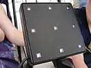 The stadium's 80,000 seats had a black-and-white 'fragment' theme that matched the overall branding design used by LOCOG for London 2012. The lines all centred on the finish line on the track.[25] The seats were made in Luton and were fitted between May and December 2010.[34] During the Games, the Stadium's grandstands contained a lighting system developed by Tait Technologies that allowed them to function as a giant video screen. Individual "paddles" containing nine LED pixels each were installed between each seat, which were controlled via a central system to display video content wrapped around the stadium. The system was primarily intended for use during the ceremonies of the Olympics and Paralympics. This technology was also adopted for the Pyeongchang Olympic Stadium, which hosted the 2018 Winter Olympics.