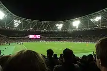 Land preparation for the stadium began in mid-2007, with the construction officially starting on 22 May 2008. The stadium held its first public event in March 2012, serving as the finish line for a celebrity run organised by the National Lottery.[9] Holding 80,000 for the Olympics and the Paralympics, it re-opened in July 2016 with 66,000 seats, but with capacity for football limited to 60,000 under the terms of the lease.[10] The decision to make West Ham United the main tenants was controversial, with the initial tenancy process having to be rerun.