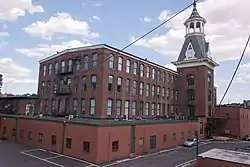 Londontown Manufacturing Company, Inc., also known as Meadow Mill, is a historic cotton mill complex located at Baltimore, Maryland, United States. It is a three-story, Italianate brick structure that features a square tower structure with a truncated spire-like roof having an open bell cupola. It was erected in 1877 as one of five mills which comprised the Woodberry Manufacturing Company. It was intended for the manufacture of seine twines.[2] It was home to London Fog, prior to its move to Eldersburg, Maryland.