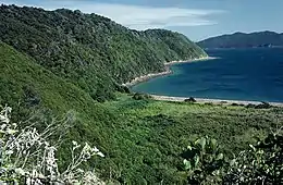 In April 1993, the Long Island-Kokomohua Marine reserve was created around Long island and the tiny Kokomohua islands off its northern tip.[4] It extends 460 metres (1,510 ft) offshore from the high water mark around the islands and was the first Marine reserve to be created in the South Island.[1] The island itself is also an important wildlife refuge and a number of species of threatened endemic birds which have been reintroduced to it including little spotted kiwi (late 1980s), yellow-crowned parakeet (2001) and South Island saddleback (2005) - all these reintroductions have been successful with healthy breeding populations of each species now present on the Island.[5][6]