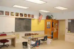 The main two-story academic wing housing most of the school's classrooms extends out to the west from the core lobby area. North of the core lobby is the new gymnasium and athletic and physical education spaces as well as the renovated 1971 wing which was completed during the summer of 2013. The reused wing was nearly completely gutted on the inside and received a completely new brick facade to match the new 2013 building with only the swimming pool and its locker rooms remaining laid out as they were originally built.[5]