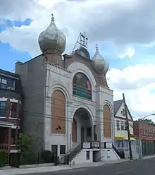 The district consists of semi-detached rowhouses, most of which have been converted into S.R.O.'s (Single Room Occupancy).[2] The district includes 61 contributing buildings. It is primarily residential, but also includes the site of the former Prospect Hospital,[3] two churches (United Church and St. Margaret's Episcopal Church), and a much altered estate house (Patrolman P. Lynch Community Center).[4] Most of the semi-detached rowhouses were designed at the same time by one architect, Warren C. Dickerson.[5]