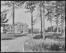The original Longyear Hall, named for prominent Marquette real estate developer and early Northern Michigan Normal School patron John Munroe Longyear, was constructed in 1900,[5] the year after Northern was founded.[2] This building burned down in 1905. A second Longyear Building, a reconstruction of the original, was built in 1907, based on a design by Battle Creek architect E. W. Arnold.[5] Longyear Hall was used to house administration offices, classrooms, and the library.[4]