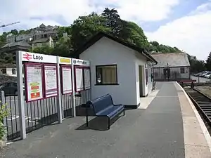 Looe railway station (Cornish: Logh) serves the twin towns of East and West Looe, in Cornwall, England. The station is the terminus of the scenic Looe Valley Line 8.75 miles (14 km) south of Liskeard. It faces out across the estuary of the River Looe.