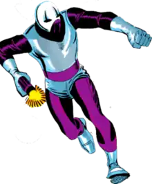 Since then, the Looter has had no success whatsoever, even after a name change to the Meteor Man. He would come into conflict with Nighthawk after stealing a meteor from Kyle Richmond's home after he purchased it from the museum. Meteor Man would face Nighthawk and Spider-Man but would escape. Valkyrie from the Defenders helps Spider-Man apprehend Meteor Man. Fester tried to escape on his balloon but Valkyrie throws her sword into the balloon, causing it to pop. Meteor Man crashed into the ground and is hospitalized for a few months.[5] He would reappear at the Empire State University campus to find components from a microwave energy exhibit to increase his powers. This would lead into another conflict with Spider-Man and Giant-Man. Fester created a transmitter that transmuted the energy in his meteors into microwaves which is then transmitted into his nervous system. However, his transmitter was channeling too much power and the feedback caused it to explode and Fester was presumed dead.[6]