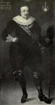James King was born on Warbester Hoy, in the Orkney Islands. He was recruited into the Swedish Army in 1615, and in 1622 he was a captain in Ruthven's regiment. By 1634 King had gained some prominence and commanded three of the regiments at the siege of Hildesheim. For this action he was promoted Major General.[1] By 1636, he was a Lieutenant General and commanded the left wing of the Swedish Army at the Battle of Wittstock as part of Alexander Leslie's Army of the Weser.[2] His report of the battle, and his role within it lay undetected until recently, but has now been published.[3] After Wittstock, King's cavalry formed an Army Volante supported by his fellow Scot, Major General John Ruthven who had also fought at Wittstock. The conducted a largely successful campaign around Minden throughout early 1637. However, the Swedish campaign began to falter and problems arose with the German allies. Many of the Scots found themselves unpopular in wishing to press for the Restoration of the Palatinate causing tensions with some of their Swedish allies. Moreover, tensions in Scotland saw Leslie leave to form the Army of the Covenant in Scotland leaving King in charge of the remnant Army of the Weser. With this much reduced force, coupled with fresh levies from England led by William Lord Craven, King was part of the allied forces defeated at the Battle of Vlotho.[4] Craven and Prince Rupert of the Rhine were captured by the victorious Imperialists. James King blamed Rupert's rashness for the defeat, while Rupert in turn blamed King's caution. It is clear from the correspondence on the Swedish archives that King had managed to extract Charles Louis and his forces from the field and had them under his protection in Minden throughout October and November, a matter that caused much consternation to Field Marshal Banier who sowed rumours about King preferring the Elector's to Swedish service. This was something King forcefully rejected, although he did seek instruction as to how to deal with Charles Louis and his army.[5] These and similar letters reveal the rumours of King only escaping to Minden "with only five men" to be fantasy as it is clear he had the vast majority of his troops with him in the town.[6]
