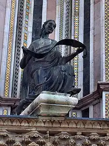 bronze statue on the left pier of the façade of the Orvieto Cathedral, Italy