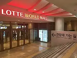 Lotte World Mall (Korean: 롯데월드몰) is a shopping complex in the Songpa District of Seoul, South Korea. First opened in October 2014,[1] it includes the Lotte World Tower, the Lotte World Mall building, and the Avenue L building. The Lotte World Mall's site comprises 26,000 square meters, with a total floor area of 244,000 square meters. The Lotte World Mall building and Lotte World Tower are connected by an underground plaza.[2]
