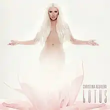 Aguilera announced via Twitter on September 12, 2012, that the album would be titled Lotus.[11] The album artwork was shot by fashion photographer Enrique Badulescu and was unveiled by Aguilera on October 5.[12][13] The cover shows Aguilera emerging from a lotus flower with her arms outstretched. She is completely nude with her long, blonde hair covering her breasts, while her vulva is obscured by a white light.[14] It received a generally positive response from critics; Tiffany Lee from Yahoo! Music complimented Aguilera's figure,[15][16] while Sam Lansky from Idolator drew comparisons to the cover of her fourth studio album, Stripped (2002).[17] Lotus was released on November 13, 2012, by RCA Records.[10]