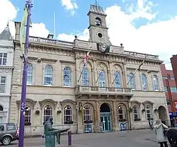 The Loughborough Town Hall is a building fronting onto the Market Place in Loughborough, Leicestershire, England. Built as a corn exchange and ballroom in 1855, it later became a municipal building and subsequently a theatre. It is a Grade II listed building.[1] The building is still used for full council meetings of Charnwood Borough Council.