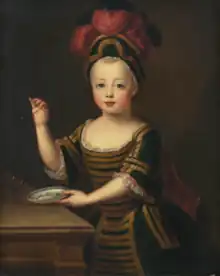 Soon after his birth, on 24 June 1704, the young prince was baptised as a Roman Catholic at the Château de Lunéville.[1] He did not see the deaths of two of his siblings: Louis, Duke of Bar (26 August 1699  2 April 1700) and Princess Louise Christine (13 November 1701  18 November 1701) both died before reaching the age of one. By the time of his birth, however, two sisters had survived.