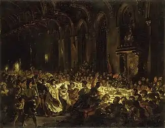A painting entitled 'The Bishop of Liege slain by order of William de la Marck