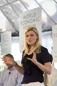 ![]() Bojesen moderates a debate at the 2010 World Economic Forum on the Middle East in Morocco. | |