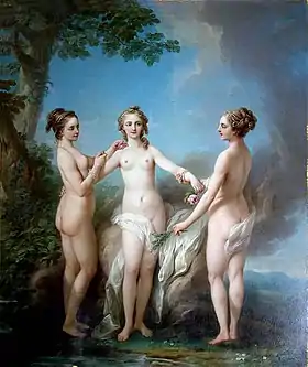 Louise Julie de Mailly was known to be so in love with the king that she "could do nothing without asking his advice" and never involved herself with state affairs.[1] This made her acceptable to Cardinal Fleury, but also a disappointment to the court nobility, who wished for the king to have a mistress who could influence the king against the pacifist policy of Fleury and engage in warfare, which the ideals of nobility regarded as necessary for national dignity and glory.[1] Among the war-favoring aristocrats were the kings friends, the manipulative duc de Richelieu, and Charles, Prince of Soubise, who supported the idea to introduce a new mistress to the king, who could be used to oppose the influence of the Cardinal and his peace policy and push France to engage in war, and they viewed Louise Julie's sister Marie Anne de Mailly, marquise de La Tournelle, as a suitable candidate for this purpose.[1]