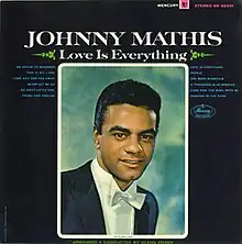 Love Is Everything is an album by American pop singer Johnny Mathis that was released by Mercury Records on March 5, 1965,[1] and included covers of hit songs from the 1930s ("Dancing in the Dark"), 1940s ("Long Ago (and Far Away)"), 1950s ("An Affair to Remember (Our Love Affair)" and "Never Let Me Go") and 1960s ("Go Away Little Girl", "People", and "This Is All I Ask") as well as new songs from the composers of "Fly Me to the Moon" ("A Thousand Blue Bubbles"), "What Will Mary Say" ("One More Mountain"), and "It's the Most Wonderful Time of the Year" ("Love Is Everything").