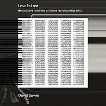 "Love Is Lost" is a song by English rock musician David Bowie from his album The Next Day. James Murphy's "Hello Steve Reich Mix for the DFA" was released as the fifth single from Bowie's 24th studio album The Next Day as a promotion for The Next Day Extra, a special edition of bonus tracks, remixes, and music videos. The remix version of the song contains cut and looped samples from a new recording of Steve Reich's 1972 piece Clapping Music performed by Murphy and three other musicians, plus a sample from Bowie's 1980 hit "Ashes to Ashes."
