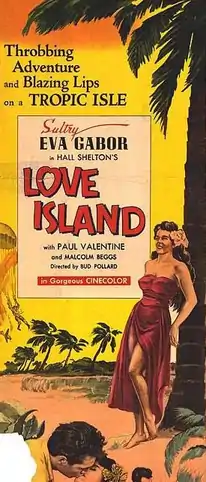 Love Island is a 1952 American film directed by Bud Pollard starring Paul Valentine and Eva Gabor. Originally released in Cinecolor, the film uses extensive footage taken in Bali used from the film Legong: Dance of the Virgins (1935). It was the final directorial effort of Bud Pollard who had previously directed several race films and exploitation films.