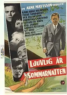 Lovely Is the Summer Night (Swedish: Ljuvlig är sommarnatten) is a 1961 Swedish mystery thriller film directed by Arne Mattsson. The film stars Karl-Arne Holmsten, Christina Carlwind, Per Oscarsson and Folke Sundquist.[1][2] It was shot at the Sundbyberg Studios of Europa Film in Stockholm. The film's sets were designed by the art directors Bertil Duroj and Arne Åkermark. It is an adaptation of a detective novel by Dagmar Lange (Maria Lang), who wrote the script for the film herself. It is a sequel to the 1960 film When Darkness Falls.