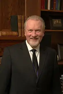 He was named Taylor's President in January 2016, following a nationwide search.[2] Haines is a 1975 alumnus of Taylor and served on Taylor's administrative staff from 1977-1987, rising to the position of Vice President for Student Development before leaving Taylor to attend law school at the Maurer School of Law at Indiana University (Bloomington, Indiana) in 1987. During his law school experience Haines served as Editor-in-Chief of the Indiana Law Journal.