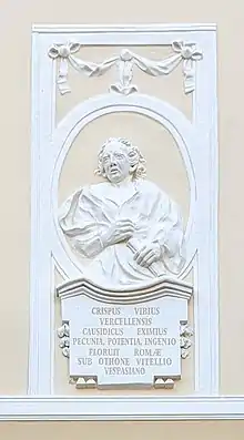 In the year 68, Crispus was appointed curator aquarum (or supervisor of aqueducts) in Rome.[8] Crispus was prominent during the chaos of the Year of Four Emperors on several occasions. Once, in the Senate, he prosecuted an equites, Annius Faustus, for being a delator — Faustus had informed against his brother, possibly in connection to his crimes against the Mauretanians. Although Crispus managed to win his suit against Faustus, Tacitus notes it was against fierce opposition: "Many remembered that Crispus had followed the same profession with profit; nor was it the penalty but the prosecutor that they disliked."[9] Tacitus notes he was prominent later that year in the Senate in the prosecution of delatores active during Nero's reign.[10]