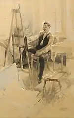 His studies did not resume until 1881, when he enrolled at the Academy of Fine Arts, Munich, where his instructors were Ludwig von Löfftz and Nikolaos Gysis.[2] While there, he exchanged ideas with other Czech painters such as Mikoláš Aleš and Alfons Mucha. His first professional successes came as an illustrator for several German and Czech magazines, such as Světozor.[1]