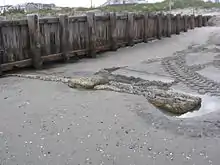 The lighthouse's foundations and the seawall in front of it were damaged by a severe storm in September 1889. The storm threatened the light enough that the illumination apparatus was removed, and the lighthouse was temporarily abandoned.[1] In 1899, a kitchen addition was added to the structure, and the next year, a concrete seawall was constructed. The last major improvement was the replacement of the oil wick lamp in the illuminating apparatus by an incandescent oil vapor lamp. On November 21, 1923, a fire was started when the keeper's dog knocked over a kerosene lantern, destroying part of the roof and the kitchen. A temporary roof patch was torn off in a storm in March 1924, and the structure was decommissioned. The structure was moved to 31st Street and Landis Avenue later that year, refurbished, and sold as a private residence. It was later moved to 3414 Landis.The original lighthouse was replaced by a 45 ft (14 m) steel skeleton tower on the beach, which flashed red every six seconds, and was visible approximately 10 nautical miles; 19 kilometres (12 mi). The automated tower was damaged in the Ash Wednesday Storm of 1962, and later dismantled. The original site of the light station is on the present 31st Street beach. Though usually buried under sand, parts of the lighthouse's foundations are occasionally uncovered after a large storm.