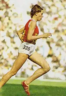 Lyudmila Ivanovna Bragina (Russian: Людмила Ивановна Брагина, born 24 July 1943) is a retired Soviet and Russian middle distance runner. She competed for the Soviet Union in the 1500 m at the 1972 and 1976 Olympics; she won the event in 1972 and finished fifth in 1976. In July 1972 she set a new 1500 m world record of 4:06.9, at the Soviet championships, and then progressively improved it in round 1 (4:06.47), the semi-finals (4:05.07}, and the final (4:01.38), of the 1972 Olympics.[1][2] The same year she was awarded the Order of the Red Banner of Labour. She also set three world records in the 3000 m: 8:53.0 in 1972, 8:52.74 in 1974 and 8:27.12 in 1976.[3] At the European Championships, Bragina won four silver medals: in the 3,000 m outdoors (1974), and in the 800 m (1970) and 1,500 m indoors (1971–72).[1]