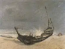 Lepic and Degas were friends as young men, with similar interests, and were to co-operate in other ways too.[4] It was Degas who persuaded Lepic to help plan and participate in the first two Impressionist exhibitions, but insistence by the group that he should not exhibit at the same time in the official Salon led Lepic to distance himself from them.[5] During this time, he had bought himself a boat and from 1877 paid annual visits to the town of Berck, south of Le Touquet, which was an artistic haven also for other artists on the fringes of Impressionism, such as Édouard Manet and Eugène Boudin. It is for his depictions of the beach and fishing boats there that Lepic is particularly remembered as a painter today.[6]