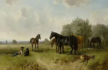 Eventually, he incorporated animals into his landscapes; creating horse portraits for the princely families of Thurn und Taxis and Wallerstein. In the latter part of his career, he specialized in hunting scenes. He also provided illustrations for the Münchener Bilderbogen.