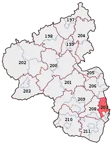Ludwigshafen/Frankenthal is an electoral constituency (German: Wahlkreis) represented in the Bundestag. It elects one member via first-past-the-post voting. Under the current constituency numbering system, it is designated as constituency 207. It is located in southeastern Rhineland-Palatinate, comprising the cities of Ludwigshafen and Frankenthal and the northern part of the Rhein-Pfalz-Kreis district.[1]