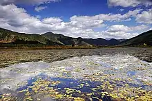 The Gaizu River, flowing out of the lake at its southeast end, has a controlled outlet that is only operated during the rainy season and remains closed from September to May. Lugu Lake is snowbound for three months a year; in the autumn and spring, it has a cool and dry climate with warm daytime temperatures.[4][5][6]