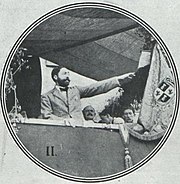 Also in liaison with the Zaragoza group Larramendi published a series of booklets under the common title En la Avanzada.[59] Crítica política. Cuestiones vascas. Cinematógrafo (1911) exploited the revolution v. counterrevolution antinomy; touching upon the Basque subject, it defended provincial fueros but lambasted separatists. Catecismo á los ateos. ¿Qué son las escuelas laicas? Romanones, ¡á la barra! (1913) re-prnted earlier pamphlets and went on with new onslaught on secular education, based on outdated illusions of Rousseau. Finally, ¡Viva el Rey! Psicología social y literaria (1914) tackled major issues like monarchy, strikes, self-government and labor organization, though it also discussed literature.[60] Apart from publications he did not neglect attending public meetings, delivering addresses across Spain at gatherings flavored with Carlism or social-Catholicism.[61]