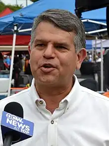 On 31 May 2023, Parada announced his intention to run for president in the 2024 presidential election. His candidacy was proposed by the Sumar por El Salvador civil movement, and Celia Medrano, an activist and human rights lawyer, was his running mate.[13][14] The following day during an interview with Telecorporación Salvadoreña's Frente a Frente, Andy Failer, the leader of the Nuestro Tiempo political party, confirmed that Parada and Medrano were both running under the banner of Nuestro Tiempo.[15] On 15 July 2023, Nuestro Tiempo held its primary elections and Parada was confirmed as the party's presidential candidate.[16][17]