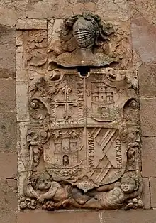 His son Garcia de Medrano y Castejon, third nephew of Luisa de Medrano, was a professor at the University of Salamanca and married Maria de los Rios y Mendoza. Likewise, his son Garcia de Medrano y Alvarez de los Rios, also named García like his father, was a student at the Old College of San Bartolomé, a scholar and professor at the University of Salamanca and the regent of the Kingdom of Navarre and Seville.[14] According to Ruiz y Vergara, he graduated as a Licentiate in Canons at the College in 1636, and on October 17, the Council gave him the position of Sixth Chair of Property, above all the other professors who had been promoted before him.[15] He was married to María Ignacia de Mendizábal y Uribe and had one son, García de Medrano y Mendizabal, I Count of Torrubia, lord of the Medrano estate of San Gregorio. The county of Torrubia is a Spanish noble title created on August 29, 1694, by King Carlos II in favor of Garcia de Medrano y Mendizabal.[16]