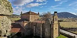 The church, attached to the Castle of San Gregorio, has a Latin cross plan and has a central nave with ribs, a wide dome and a beautiful portal. A classic polychrome choir is preserved under which there is a baptismal font from medieval times. The Church was a parish for many years under the patronage of San Gregorio. The cloister consists of two arcaded buildings at an angle and is paved with pebble stones in the traditional style of the great houses of Soria. It is now used for wedding ceremonies.[6]